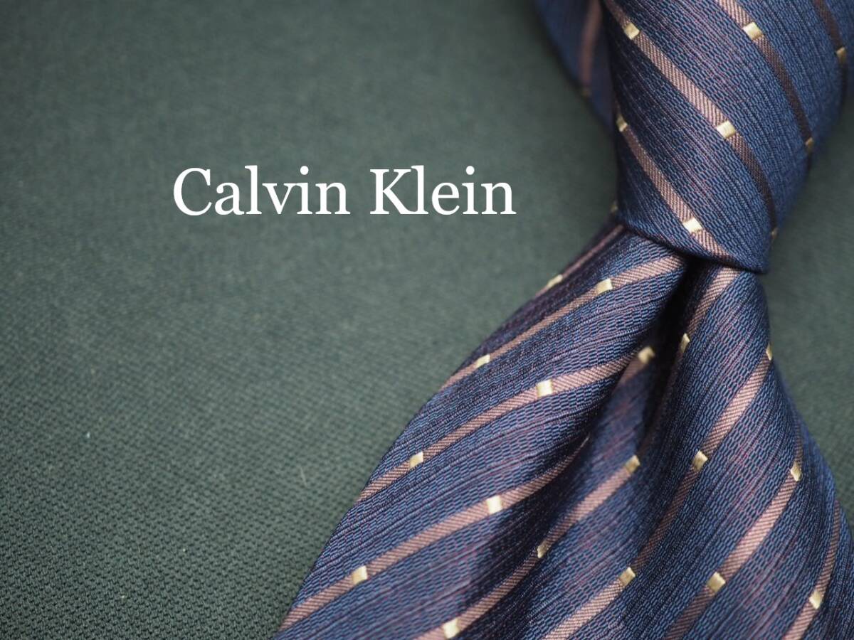 - 美品【Calvin Klein カルバンクライン】 G1036 パープルネイビー系 SILK ブランド ネクタイ 古着 良品 転売 仕入