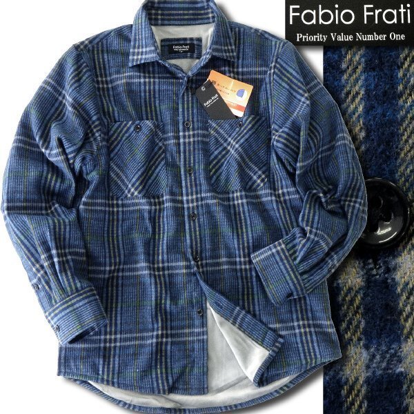 - 新品 ファビオフラーティ 裏ベロア フランネル シャツ ジャケット L 青紺黄 【FF8W-B481_BL_L】 FABIO FRATI 秋冬 CPO ブルゾン アウター