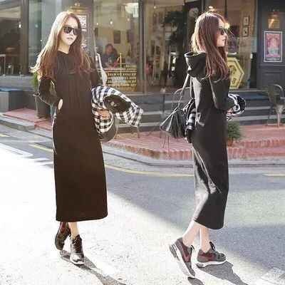- 裏起毛 スリムめ スウェット フーディーワンピ あたたか裏起毛 ポケット付プルオーバー M ブラック
