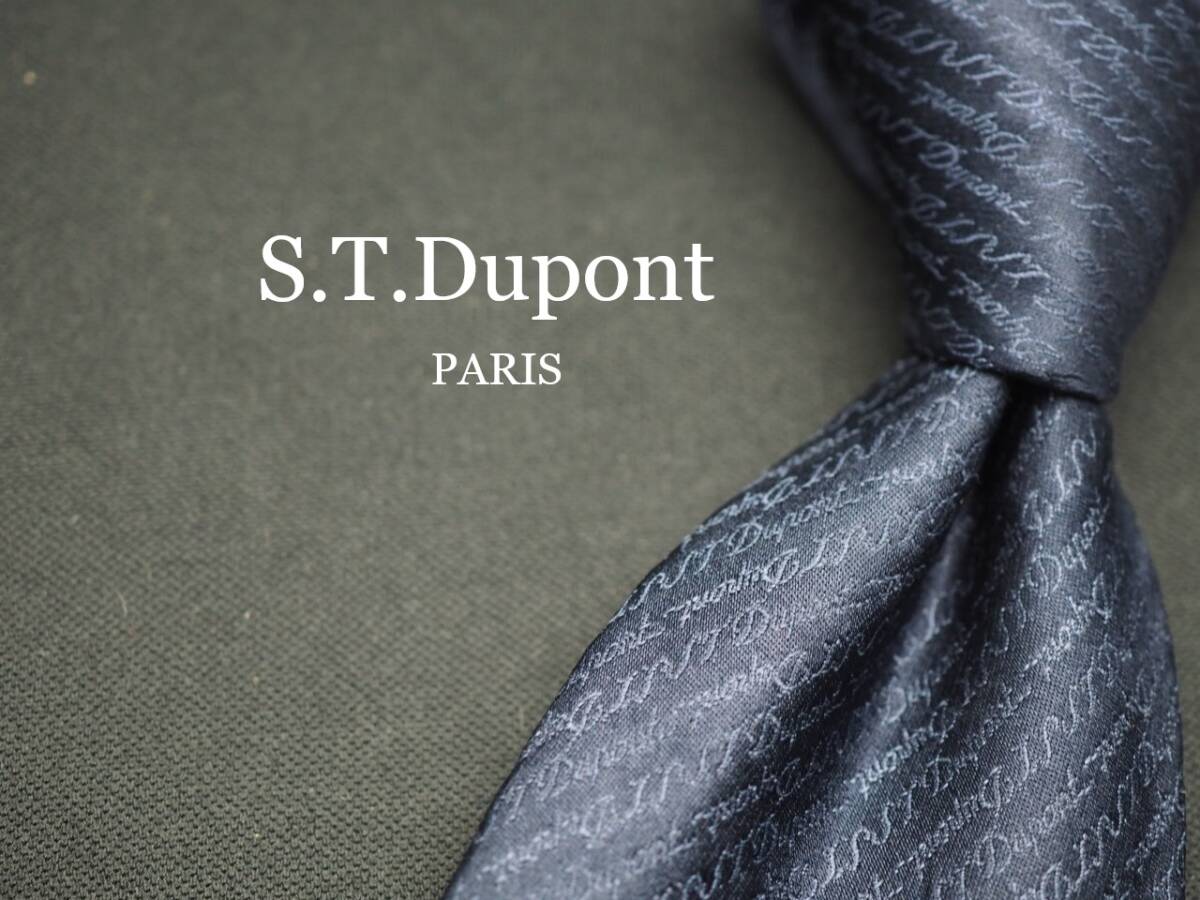 - 【S.T.Dupont デュポン】 G1107 ロゴ ネイビー SILK ブランド ネクタイ 古着 良品 転売 仕入