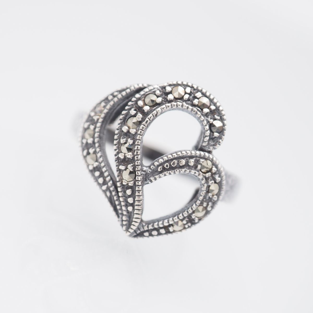 > H718 マーカサイト マルカジット SILVER925刻印 リング 透かし彫り デザイン シルバー 指輪 ヴィンテージ 15号