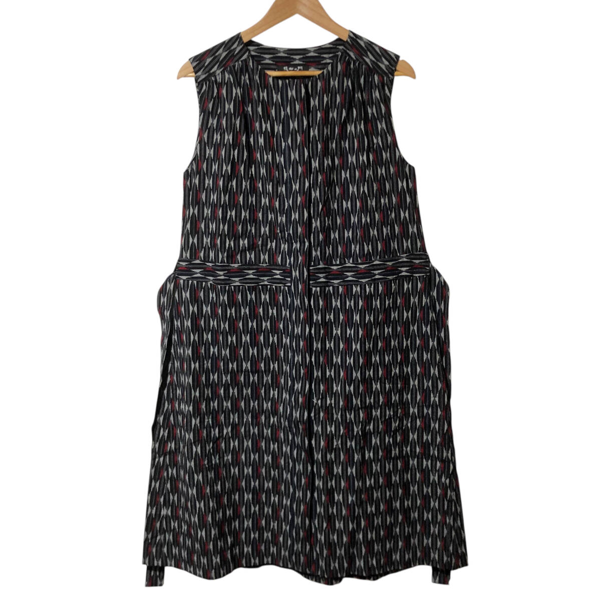 - 儀右ヱ門 ギエモン ベスト ロング シャツワンピース バタフライ 総柄 M~L 黒 白 赤 久留米絣 オカモト商店 レディース A16
