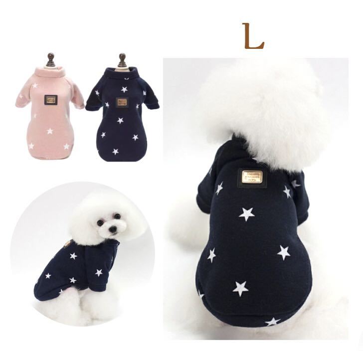 - 犬服 冬 あたたかい おしゃれ かわいい 犬 防寒 ジャンパー 星柄 小型犬 L ネイビー スター お出かけ ペット服