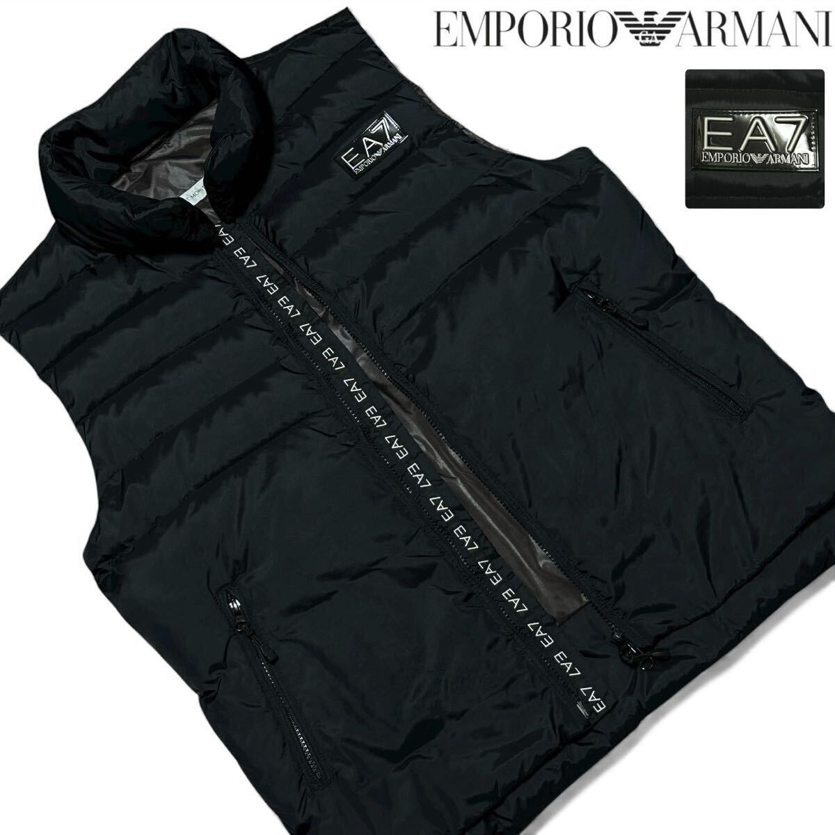 > 極美品/Lサイズ●エンポリオ アルマーニ ダウンベスト ジャケット アウター ダブルジップ 極暖 EA7ロゴ 黒 ブラック EMPORIO ARMANI