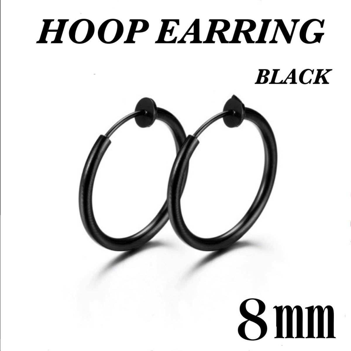 - フープイヤリング ブラック ステンレス 8㎜ 2個セット