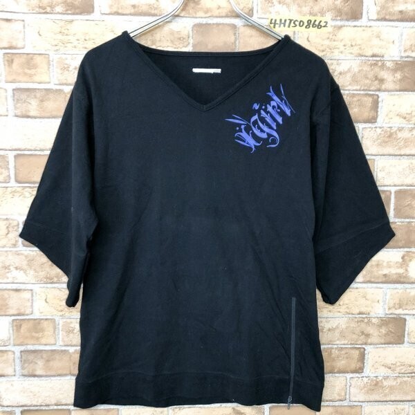 - X-girl エックスガール レディース 日本製 Vネック 裾ジップ 五分袖Tシャツ カットソー 2 黒