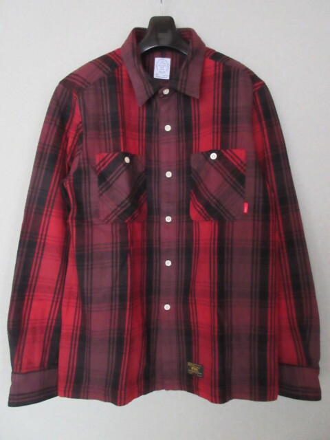 - 送料無料 WTAPS ダブルタップス UNION L/S 02 SHIRT. COTTON TEXTILE フランネル チェックシャツ XL 赤/黒 正規品 日本製 超美品