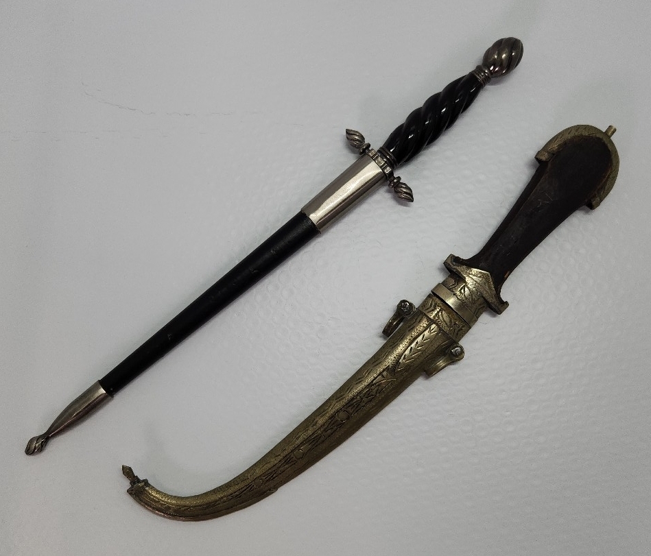 - △模造刀(鋳物) スティレット(三角錐短剣) ジャンビーヤ(アラビア短剣) 2点セット 装飾刀 中世 シャムシール 武具 小道具 レプリカ