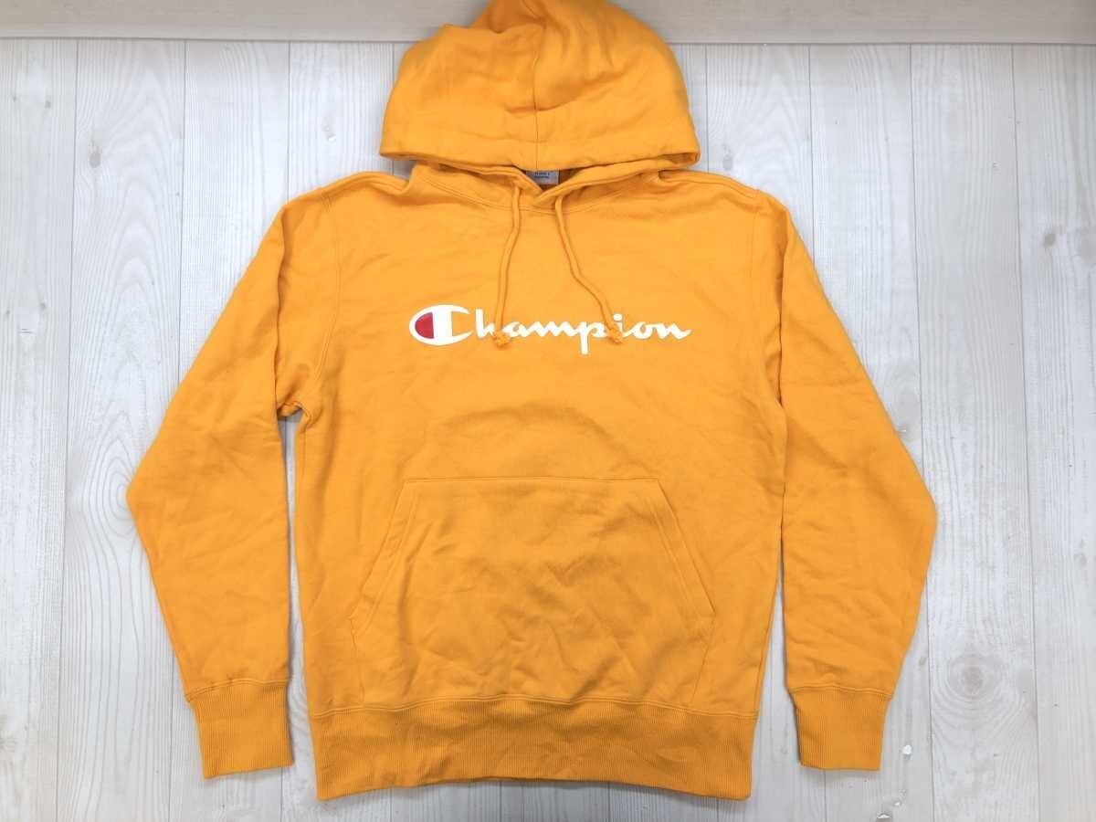 > チャンピオン Champion アメカジ スポーツ ストリート フロントロゴ スウェット フーディー パーカー プルオーバー メンズ 綿100% M 山吹色