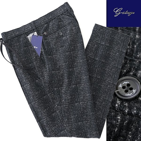 - 新品 ジーステージ 裏起毛 グレンチェック ジャージー スラックス 50(XL) 濃灰 【6-30504_4_50】 秋冬 ニット イージー パンツ G-stage