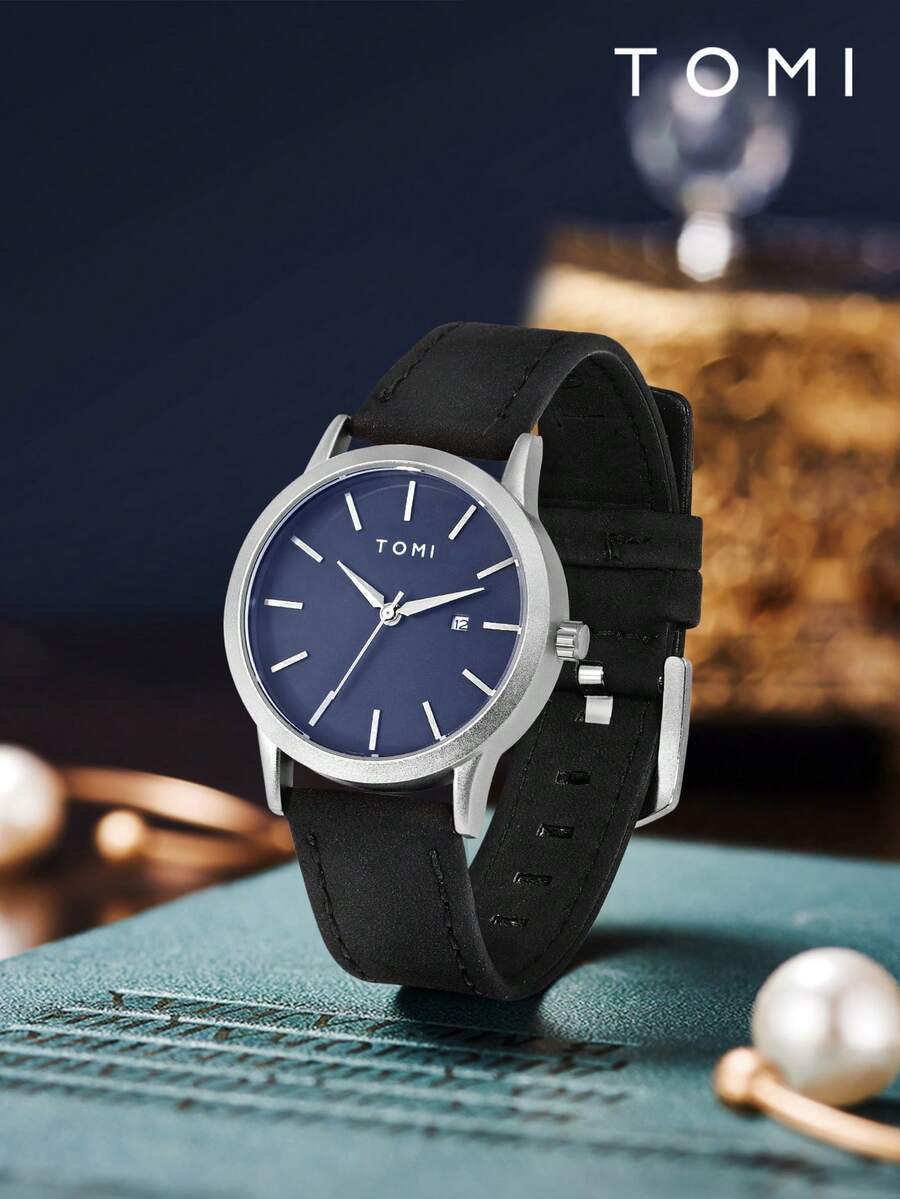 > 腕時計 メンズ クォーツ 1個 ボックス入り ユニセックス 小ダイヤル シンプル スティックマーカー 日付 亜鉛合金 レザーバンド