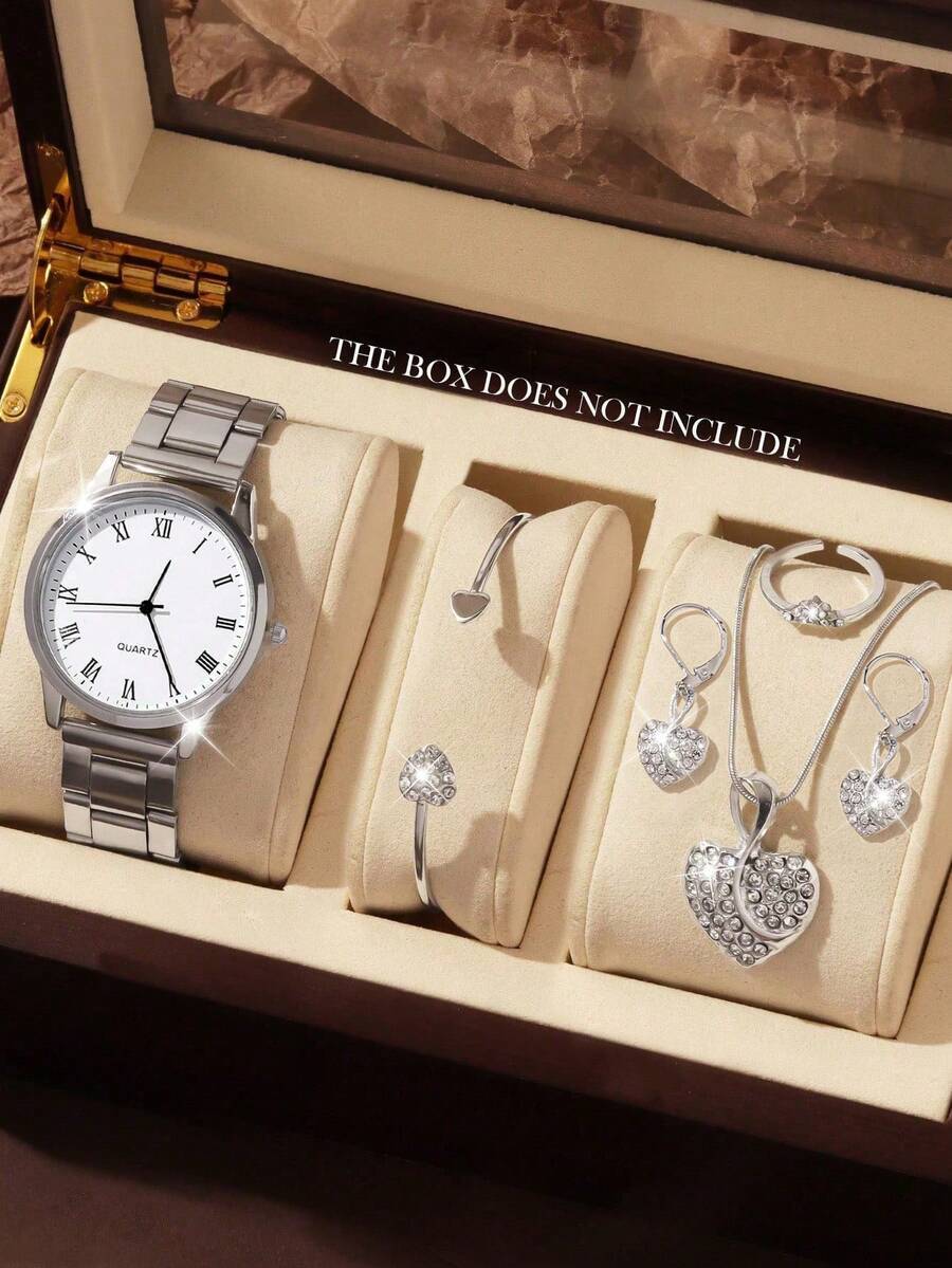 > 腕時計 レディース セット ファッショナブルで多用途な女性用クォーツ腕時計6個セット、ローマ数字ダイヤル、ゴールドスチールバンド、