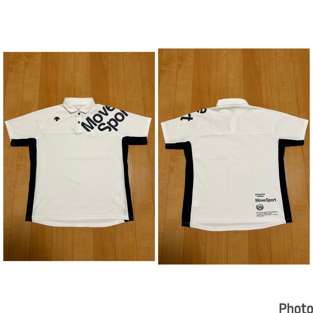 > 着用少な目.美品☆デサント・ムーブスポーツ メンズJASPOサイズL Coolist D-Tec/軽量鹿の子状.快適速乾ドライ半袖ポロシャツ 両面BIGロゴ!