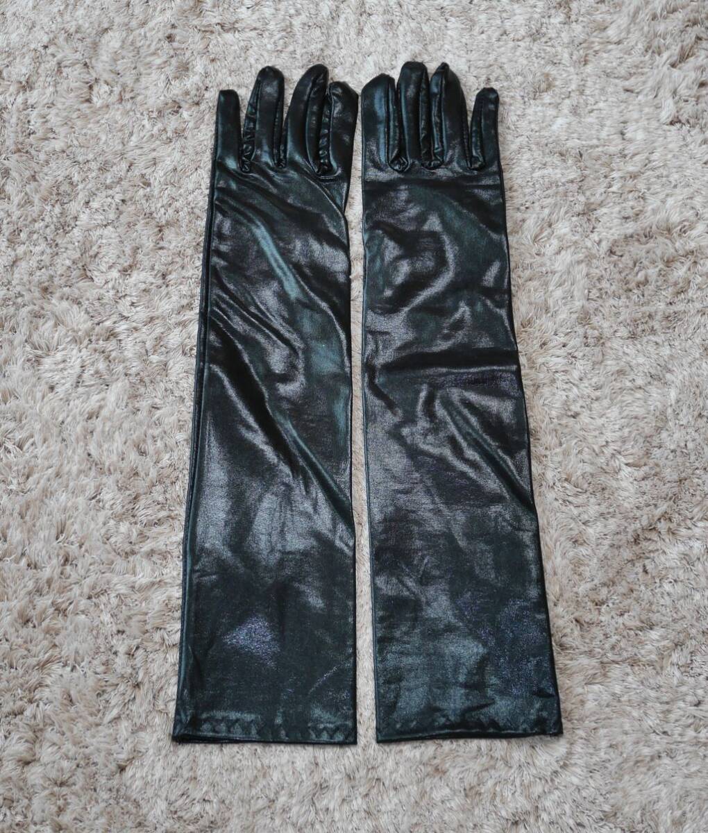 - メタリックレザーロンググローブ フェイクレザーグローブ 革手袋 43cm