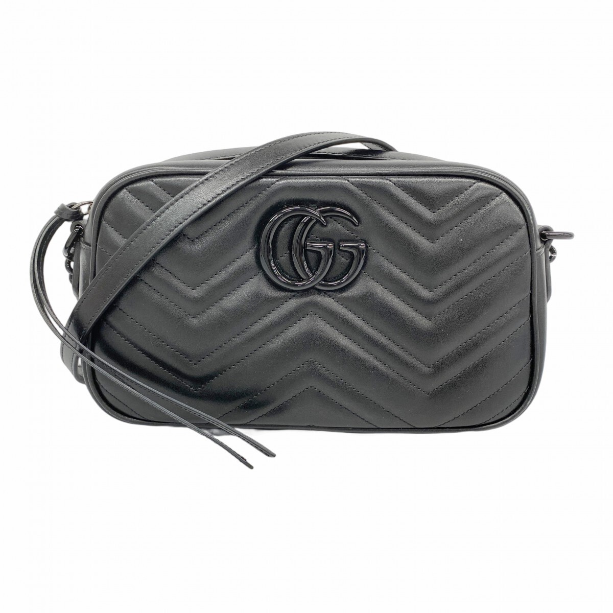 - 【5ob0885】グッチ ショルダーバッグ GGマーモント 447632 レザー ブラック【中古】レディース