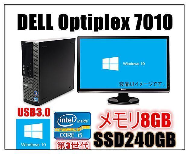 > 中古パソコン 24型液晶セット Windows 10 メモリ8GB SSD240GB DELL Optiplex 7010 Core i5 第三世代CPU 3470 3.2G HD500GB USB3.0 Office付