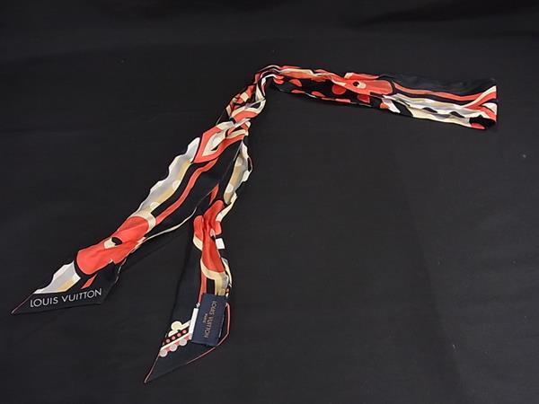 > 1円 LOUIS VUITTON ルイヴィトン M76187 バンドーBB ポップ モノグラム シルク100% ツイリー リボンスカーフ レディース レッド系 FR5785