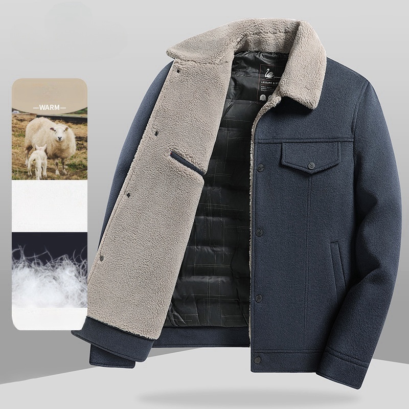 > ウールジャケット ダウンジャケット 裏ボア裏フリース ショートコート メンズ*新品 秋冬服 アウター【MS2336】灰ブルー 3XL