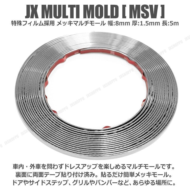 > 送料0円 [独自開発] マルチモール 特殊フィルム採用 メッキシルバー 鏡面 メッキ グリルやバンパーに 幅約8mm 厚さ約1.5mm 長さ約5m 汎用