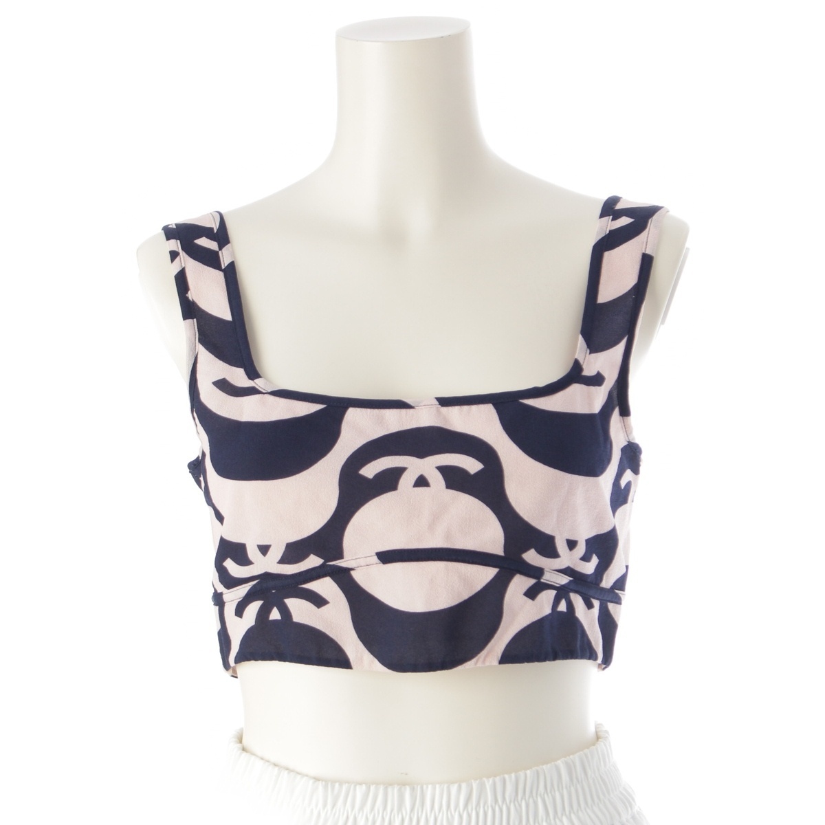> シャネル シルク ココマーク ビスチェ トップス P70218 ピンクベージュ×ネイビー 38【中古】