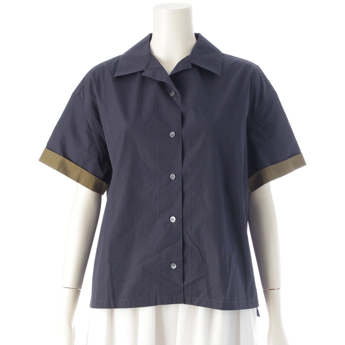 > ロエベ コットン アナグラム 刺しゅう ブラウス S359Y05XC6 ネイビー カーキグリーン バイカラー 34【中古】