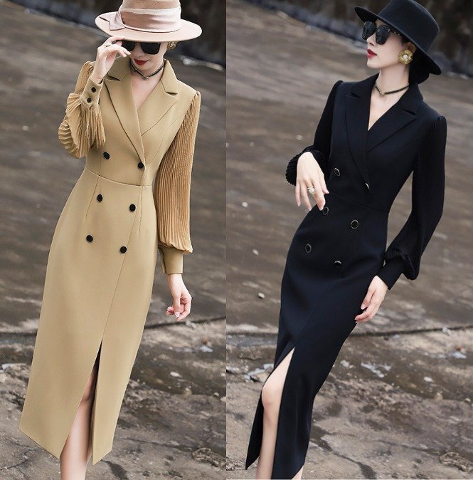 - ロングワンピース 長袖 スリット シンプル きれいめ お出かけ デート レディース XL キャメル