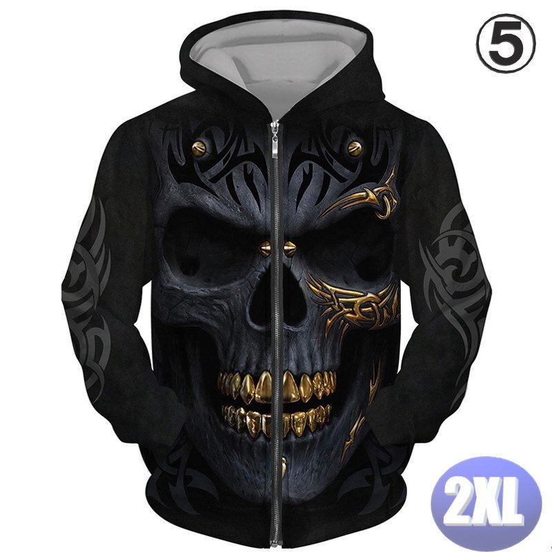 - フード付き ドクロパーカー ジップアップ カラー5 2XL トレーナー アウター 防寒 n717