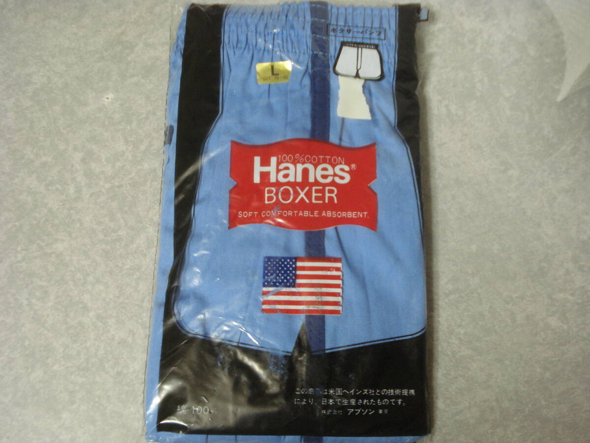- ☆ レトロ Hanes ヘインズ ボクサーパンツ トランクス 旧サイズL☆ 青 ブルー 日本製 アンダーウェア 下着