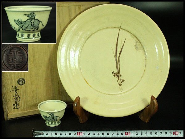 - 【金閣】茶道具 永楽善五郎 作 皿 盃 二件まとめて 旧家蔵出 送料無料(YC528)