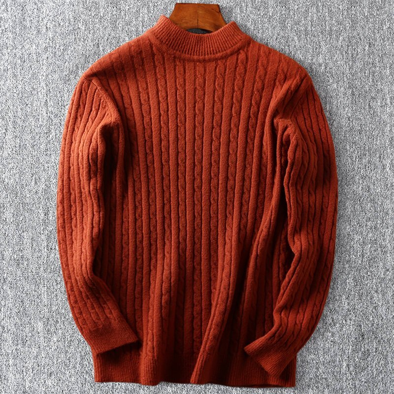 - 新品 DCKMANY ウール混 ジャガード リブニット ケーブル セーター タートルネック メンズ 秋冬 暖かい スリム プルオーバー 赤 T4096 L-XL