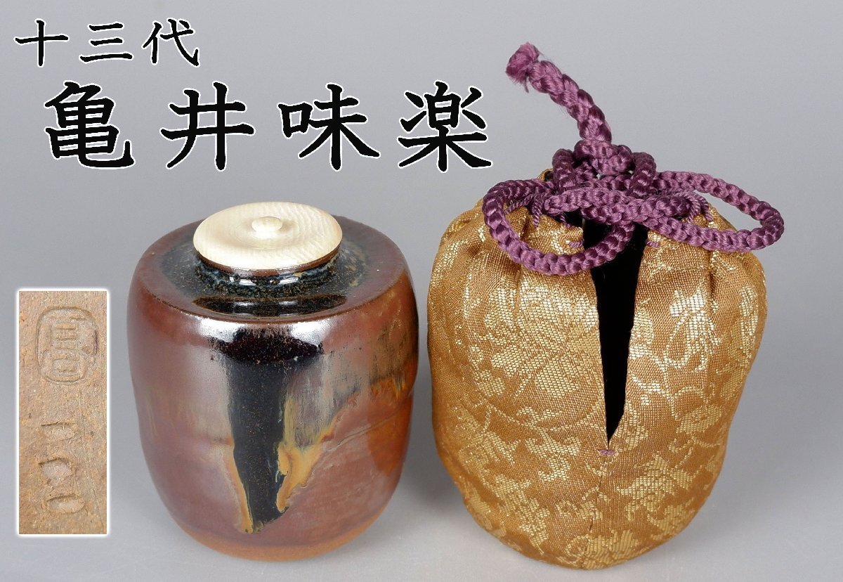 > 【MKA】13代亀井味楽 高取肩衝茶入 見事な景色 福岡 遠州七窯 茶道具 真作保証