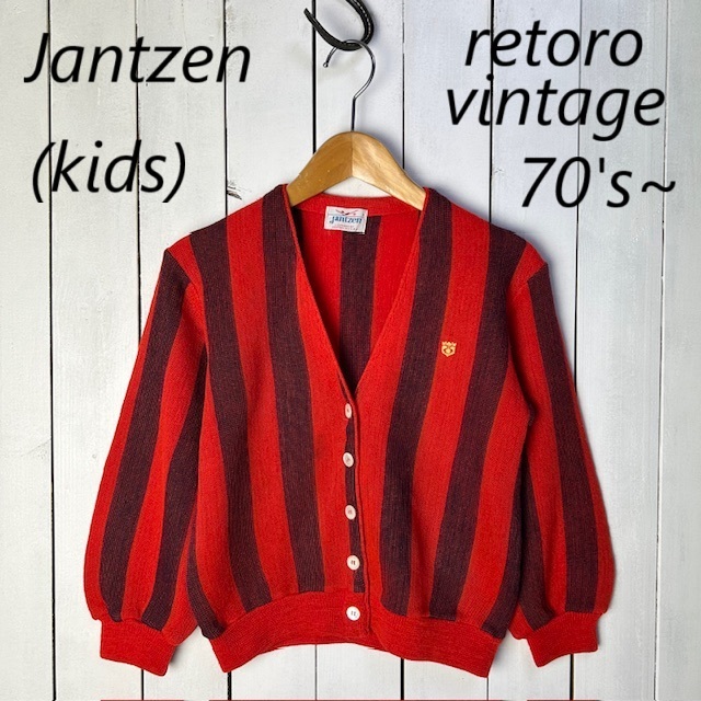 > 70s~80s jantzen ストライプ アクリルニットカーディガン 9 赤 110 120 130 ジャンセン キッズ オールド ヴィンテージ レトロ ●66