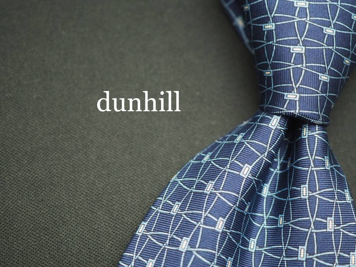 - 美品【dunhill ダンヒル】 G1439 英国製 ネイビー系 SILK ブランド ネクタイ 古着 良品 転売 仕入