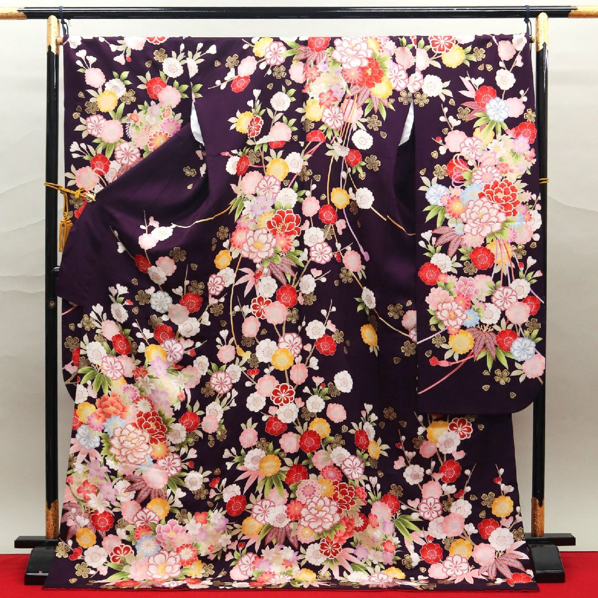 ※こちらの商品はお仕立て上がりでございますので、 商品の到着後すぐにお召し頂けます。 深紫色の仕立上がりのお振袖をご紹介いたします。