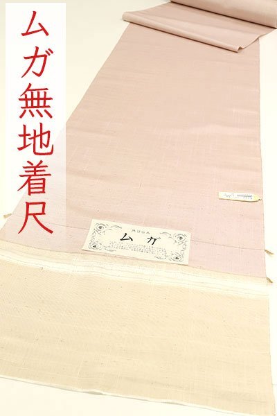 和遊館 KTK1022 単衣 ムガシルク 染め 紬 色無地 着尺 灰桜色
