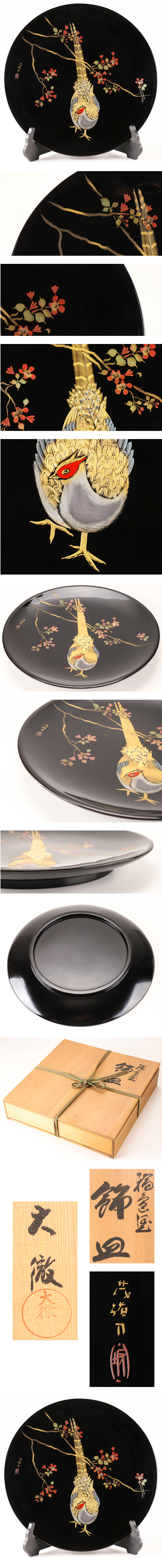 【流】能登輪島塗 大徹 茂猪刀 沈金飾皿 幅36cm 共箱 HD035拍卖