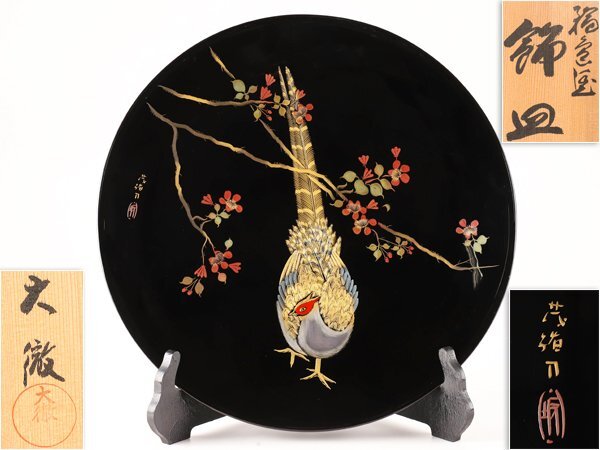 【流】能登輪島塗 大徹 茂猪刀 沈金飾皿 幅36cm 共箱 HD035