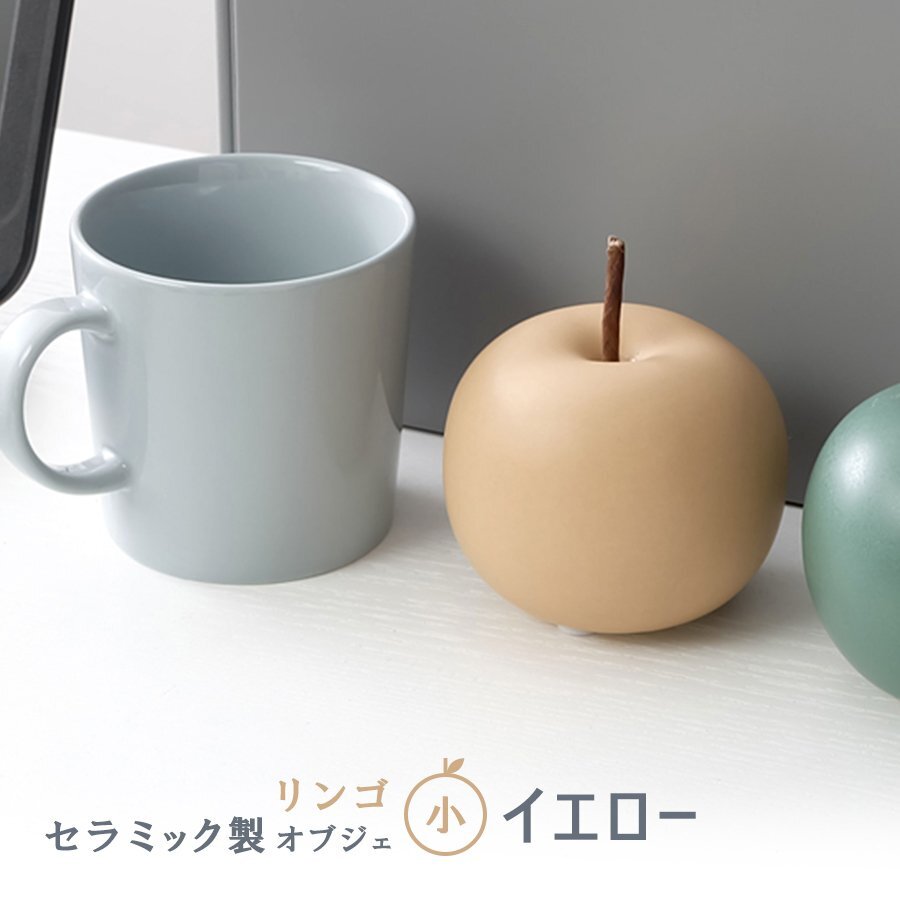 - リンゴ オブジェ 小 イエロー 雑貨 置物 小物 インテリア ディスプレイ 北欧 セラミック アースカラー 装飾 アップル 林檎 リビング 玄関