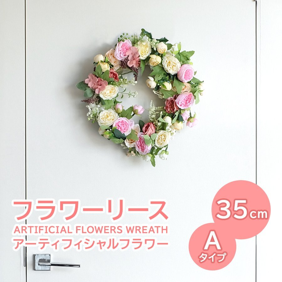 > フラワーリース 35cm Aタイプ 花輪 装飾 雑貨 小物 インテリア ディスプレイ ウォールオブジェ デコレーション 置物 造花 フェイクフラワー