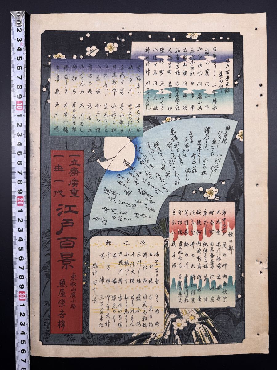 - 【真作】本物浮世絵木版画 初代 歌川広重「名所江戸百景 目録」江戸期 名所絵 大判 錦絵 保存良い
