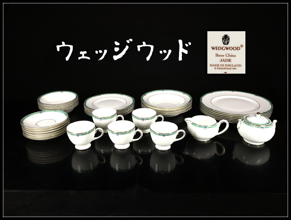 > 【吉】CN827 WEDGWOOD 【ウェッジウッド】 JADE カップ&ソーサー プレート ポット 37点 一括出品/カップ1点無し 美品!