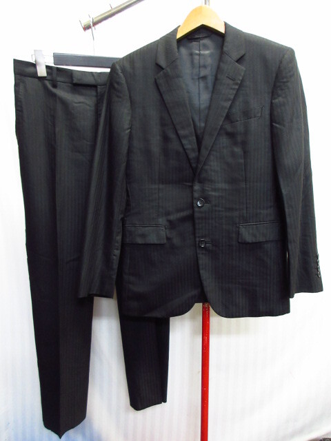 - ビームス スーツ上下セットアップ メンズ44 黒ストライプ柄テーラードジャケット&スラックスパンツ フォーマル ビジネス ブラック 11072