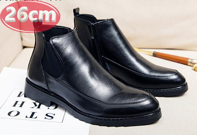 - サイドジッパー付き メンズ ビジネス レザー シューズ ブラック 26.0㎝ 革靴 靴 カジュアル 屈曲性 通勤 軽量 インポート品【n164】
