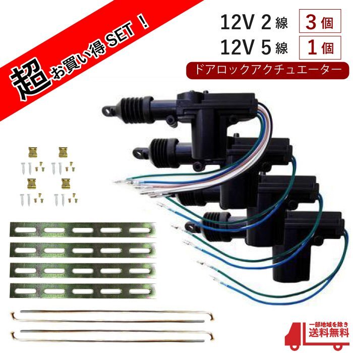 - 送料無料 汎用 流用 ドアロックアクチュエーター 12V 2線3個+5線1個 合計4個セット 集中ドアロック&キーレスなど ドアロックモーターガン
