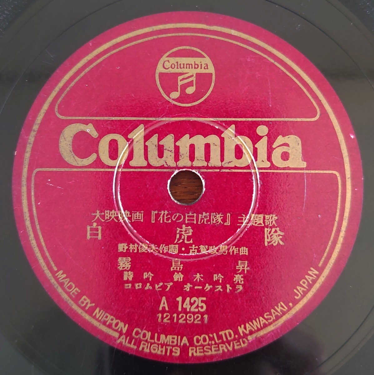 - 【SP盤レコード/ヒビ】Columbia A1425/流行歌 白虎隊 霧島昇/歌謡曲 荒城の月 藤山一郎