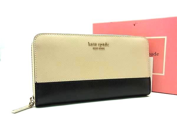 - ■美品■ kate spade ケイトスペード PWR00281 レザー ラウンドファスナー 長財布 ウォレット グレージュ系×ブラック系 DJ5104