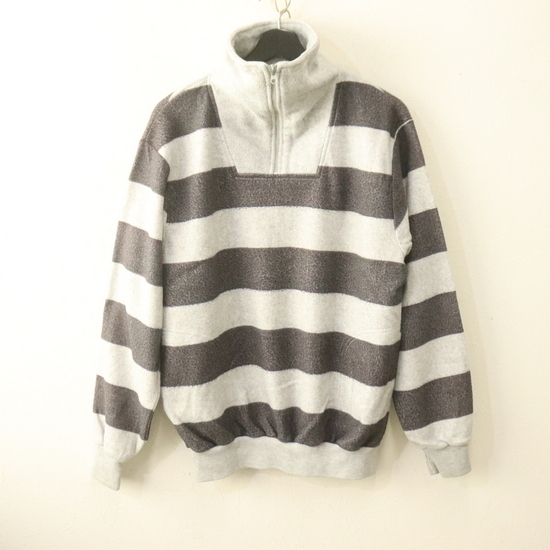 - V107 80sビンテージ J.B.SCOTT フリースジャケット■1980年代製 表記Lサイズ グレー ボーダー ハーフジップ 柄 アメカジ 古着 古着卸