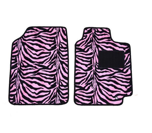- 新品 汎用フロアマット 軽/普通車用 フロント2枚 ゼブラ柄ピンク