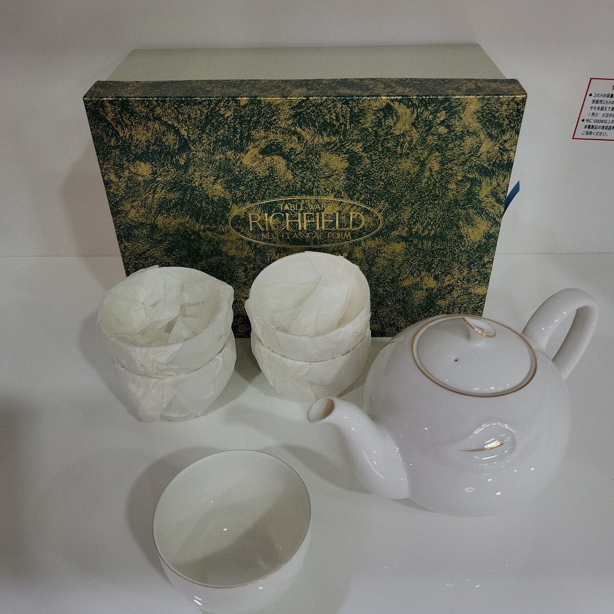 > №9445 未使用 保管品 たち吉 リッチフィールド ヴァンセーヌ 金彩 茶器セット 急須×1 湯呑/口径約8㎝×5