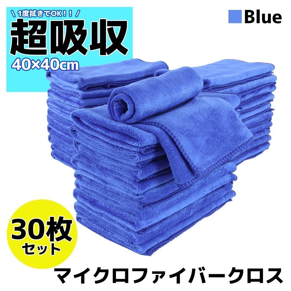 30枚セット マイクロファイバークロス 洗車 タオル ブルー 40×40cm 高吸水 速乾 傷防止 プロ仕様 業務用 洗車用品 短毛 抗菌 除菌